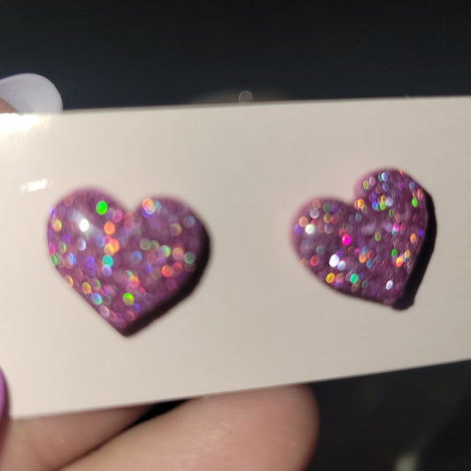 Pink Holo Heart Studs