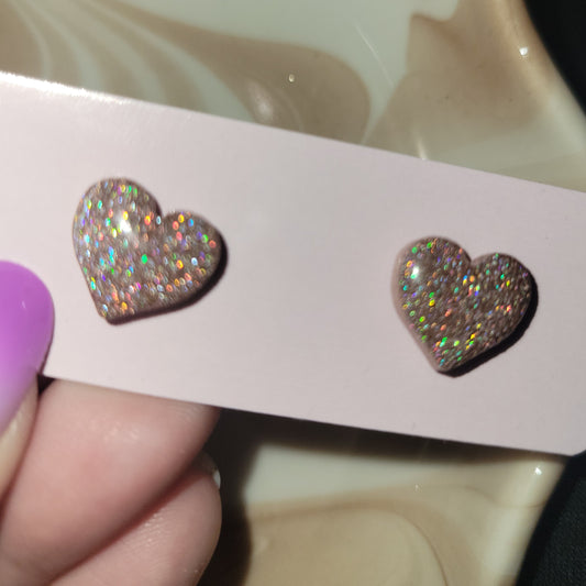 Nude Holo Heart Studs