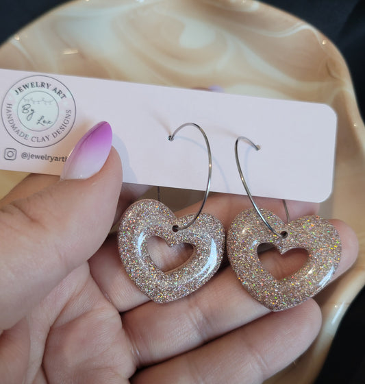 Nude Holo Heart Hoops