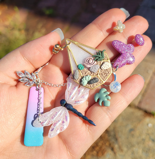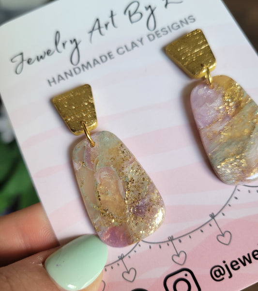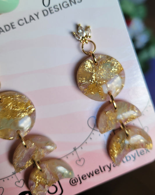 Gilded Moss/Amethyst Crystal Moon Dangles